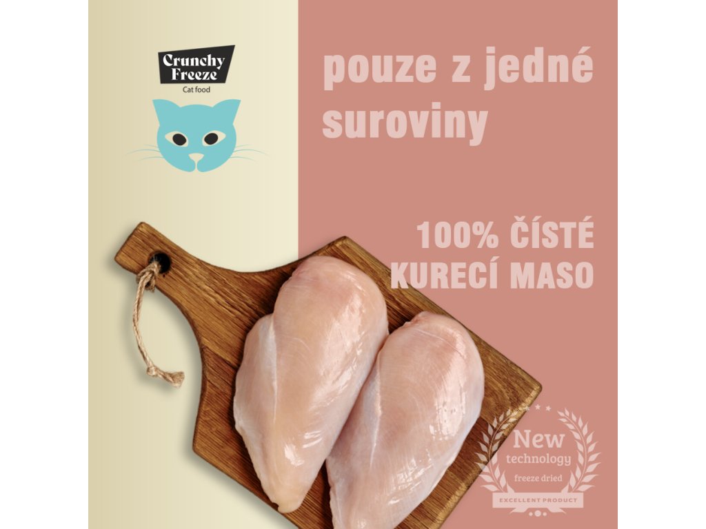 - Vlastnosti: 100% mrazem sušené kuřecí maso