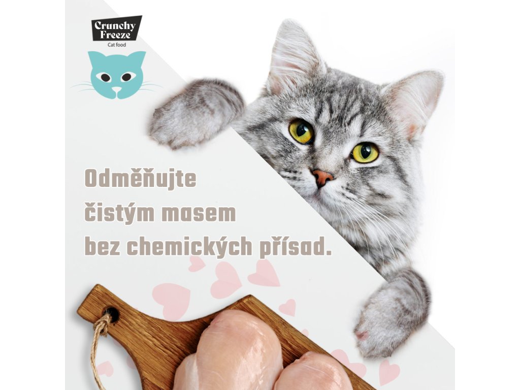 - Nepřekonatelná textura: Kočky milují ochutnat něco uspokojujícího a křupavého. S Crunchy Freeze každý sousto přináší lahodnou křupavost, která nechá vaši kočku spokojeně mrňavět.