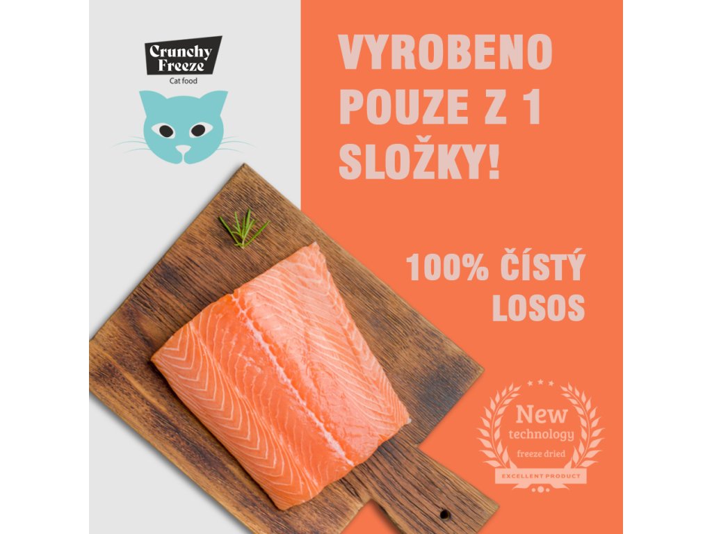 - Vlastnosti: 100% mrazem sušené maso z lososa