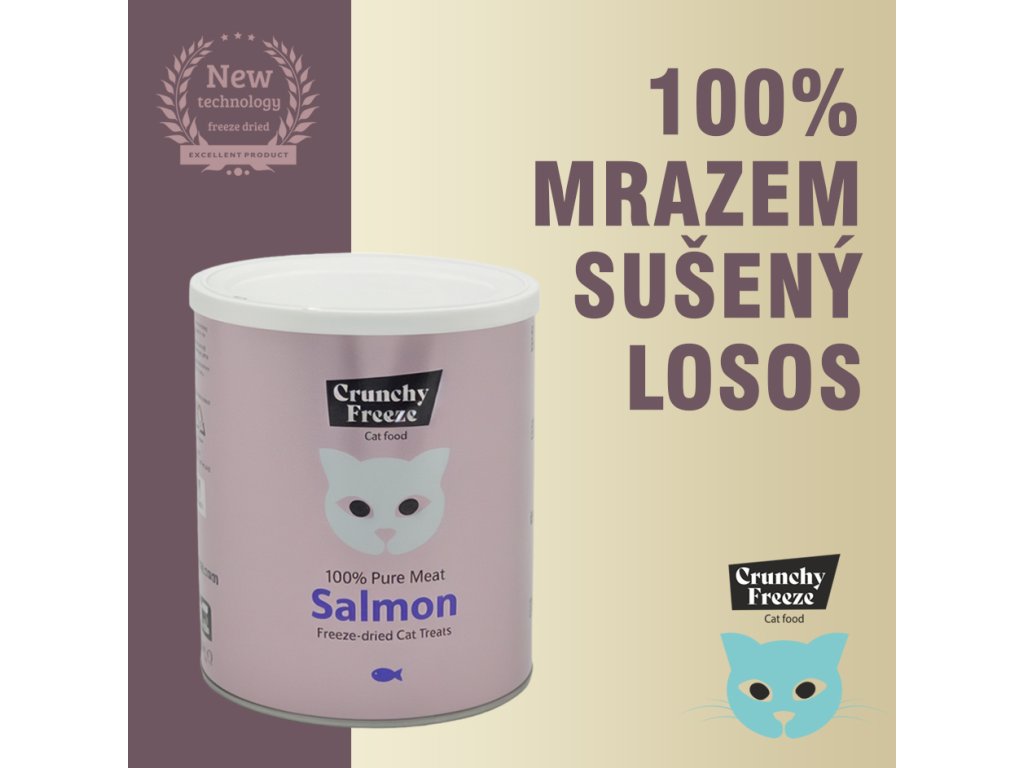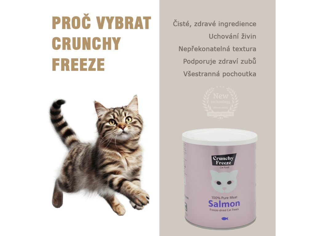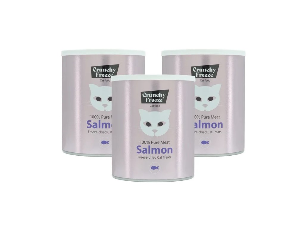 Crunchy Freeze Salmon Trojité balení Pamlsek pro kočky mrazem sušené lososové maso 3x140 g